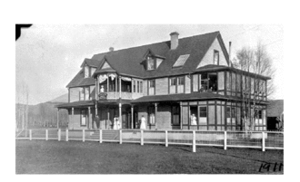 In 1911, the rebuilt Hazelton Hotel opened with 32 guest rooms and a bunkhouse which accommodated another 30 people.[68] Mid-year, the Bank of Vancouver opened a branch,[69] initially using a tent,[70] and the Inland Colonist relocated from Kitselas[71] but publishing ceased that November.[72] The Omineca Miner newspaper was launched that August.[73]