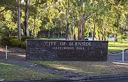 ![]() Sign heralding Hazelwood Park from Greenhill Road | |