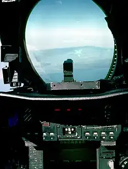 HUDs evolved from the reflector sight, a pre-World War II parallax-free optical sight technology for military fighter aircraft.[4] The gyro gunsight added a reticle that moved based on the speed and turn rate to solve for the amount of lead needed to hit a target while maneuvering.