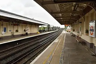 The typical off-peak service is four trains per hour to London Euston, and four trains to Watford Junction, calling at all stations. The trains to Watford Junction are northbound and are accessed through a gateway and by going down a flight of stairs, whereas the other platform is southbound and is directed towards London Euston. This is accessed by crossing over a bridge and also going down a flight of stairs to reach the platform. On the northbound platform, there is a gate exit which now has an Oyster reader, so passengers can exit through the gate without having to climb the stairs. There are also Oyster readers at the main entrance at the top of the bridge. During the Silverlink era, the gate was rarely opened – however in recent times, London Overground always leaves the gate open.