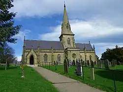 St Paul's Church, Healey, is a Grade II* Listed building completed in 1848.[8] It was designed in the decorative style by the Victorian architect Edward Buckton Lamb and has a central tower with a spire.[9] The stained glass east window was donated by Sir Robert Frankland-Russell.[10] The north window was commissioned by Lamb and bears his initials. The west window may also be to his design.[8]