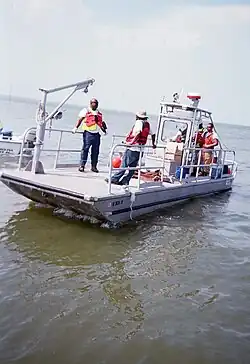 In May 2010, the National Institute for Occupational Safety and Health (NIOSH) was contacted by BP to conduct a health hazard evaluation (HHE), following the hospitalization of several fishermen working under BP's Vessels of Opportunity (VoO) program. The VoO program involved the temporary hire of local out-of-work fishermen to remove oil from the Gulf of Mexico, particularly using booming and skimming tactics. The HHE focused on all major offshore response activities, such as booming, skimming, releasing oil dispersants, in situ burning, and general containment and removal of oil. Sampling conducted to test for a wide array of chemicals, gases, particulates, and metals emitted in the offshore work showed that the substances were either undetectable or were below individual occupational exposure limits.[25]