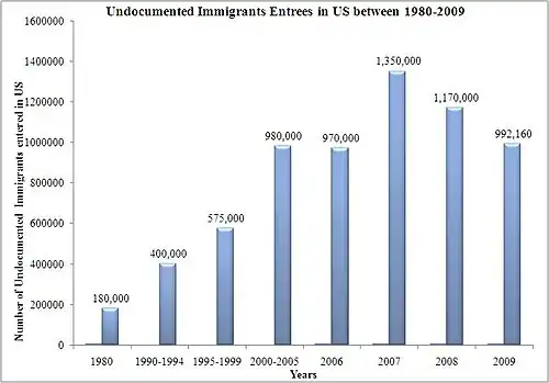 - ^ Fazel-Zarandi, Mohammad M.; Feinstein, Jonathan S.; Kaplan, Edward H. (2018-09-21). "The number of undocumented immigrants in the United States: Estimates based on demographic modeling with data from 1990 to 2016". PLOS ONE. 13 (9): e0201193. Bibcode:2018PLoSO..1301193F. doi:10.1371/journal.pone.0201193. ISSN 1932-6203. PMC 6150478. PMID 30240392.