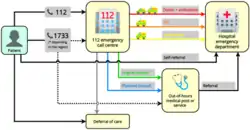 For accidents and medical emergencies, everybody can call on the emergency services. There are two phone numbers to contact the Emergency Services Network: 100 or 112. 100 gives access to the Ambulance service or Fire department. In larger cities, the fire department operates the ambulances, which elsewhere may be allocated to hospitals or ran by private organisations. 112 gives access to the police, ambulance services and fire department. The centre for the 100 and 112 services dispatches an available ambulance from the closest hospital or ambulance centre. The operator is qualified to decide to dispatch a regular ambulance, a Medical Emergency Response vehicles (MUG/SMUR) or a paramedical Intervention Team (PIT). Additionally, the Belgian Red Cross operates a number of ambulances, as do privately owned companies that operate ambulances for the emergency network. The Red Cross and a number of other "cross" charities own ambulances and have volunteers that man first-aid posts during events like football matches, cycling races, sports or other mass events. They do not participate in the daily emergency services network, but they free the it from allocating too many assets and resources during those mass events. In the case of (potential) mass casualty events, the Red Cross assists the regular emergency services to avoid occupying all other medical resources in the area by deploying First Intervention Teams (FITs), ambulances, intervention vehicles and more.
