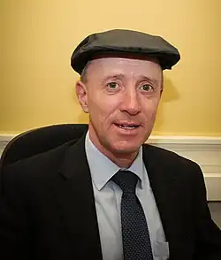 Outside the Dáil chamber, Jackie was always seen wearing a trademark flat cap in public; though Danny appears bare-headed, Michael has carried on the tradition,[4] and in February 2017 was permitted to wear it in the Dáil chamber.[17] Michael was nicknamed "Dolly", after the cloned sheep, for being similar to his father;[18][19] journalist Shane Hegarty enumerated "[t]he flat cap, the mannerisms, the political ambition, the linguistic trickery, the neck".[20] A Fine Gael election strategy document leaked in 2015 described Michael as 'someone who hides behind "the veneer of a friendly/simple country yokel" but who is "unbeatable electorally"'.[21] After the 2016 election, Michael and Danny aligned themselves with other rural independents during separate negotiations with Fine Gael and Fianna Fáil.[22] Michael publicly proposed creation of a Minister for Rural Affairs, while playing down media suggestions he himself might take the position.[23] When the 32nd Dáil changed Dáil standing orders to allow multiple technical groups, Michael and Danny joined the Rural Alliance technical group.[24]