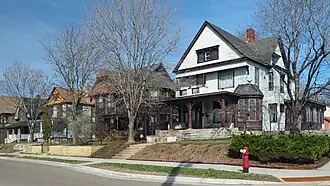 The Healy Block is a historic district of 14 Queen Anne style houses in Minneapolis, Minnesota, United States. The district, listed on the National Register of Historic Places and as a Minneapolis Historic District, is bounded by Second Avenue South, 31st Street, Third Avenue South and 32nd Street. The houses are readily visible from the Lake Street exit off Interstate 35W. The district represents the most intact and concentrated example of Queen Anne style houses by a single builder in Minneapolis.[2]