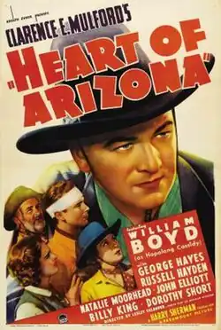 Heart of Arizona is a 1938 American Western film directed by Lesley Selander and written by Norman Houston. The film stars William Boyd, George "Gabby" Hayes, Russell Hayden, John Elliott, Billy King, Natalie Moorhead and Dorothy Short. The film was released on April 22, 1938, by Paramount Pictures.[1][2]