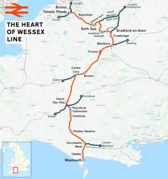 - ^ Heart of Wessex Community Rail Partnership. "HEART OF WESSEX RAIL PARTNERSHIP - LINE PLAN" (PDF). heartofwessex.org.uk. Retrieved 29 March 2019.