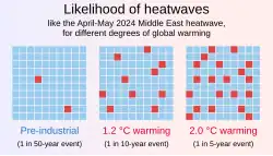 - ^ "Climate change made the deadly heatwaves that hit millions of highly vulnerable people across Asia more frequent and extreme". World Weather Attribution. 14 May 2024. Archived from the original on 19 June 2025.