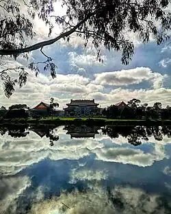 The temple is located in the Melbourne suburb of Footscray, approximately four kilometres from the Melbourne CBD, and overlooks the Maribyrnong River. It is Australia's largest Taoist temple and includes a 50-foot (15 m) gold-painted stainless steel statue of Mazu imported from Nanjing, China, installed in 2008. The statue was the second of its kind in Australia.[3]