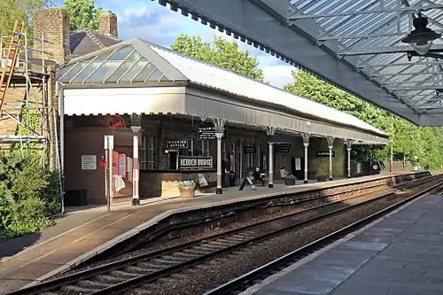 The current buildings date from 1893, construction having started in 1891.[3] By this point there was a goods yard alongside the station. This closed in 1966 and the site is now the station car park.[3] In 1997 the station was renovated, and signage in the original Lancashire and Yorkshire Railway style was installed.[3]