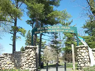 Heckscher Park is a local park and national historic district in Huntington, Suffolk County, New York. It is bounded by Madison Street, Sabbath Day Path, Main Street, and Prime Avenue. The park is roughly triangular-shaped with a large pond on northwest corner, and contains the Heckscher Museum of Art established by industrialist August Heckscher, as well as the Chapin Rainbow Theater. It hosts annual art festivals, tulip festivals, concerts, renaissance fairs, and the Huntington Summer Arts Festival.[2] Heckscher Park was listed on the National Register of Historic Places in 1985.[1]