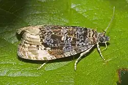 Hedya nubiferana, the marbled orchard tortrix or green budworm moth, is a moth of the family Tortricidae. It is found in the Palearctic and Nearctic realms.