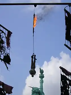 The most recognizable landmark in the park is a 1/3 scale replica of the Statue of Liberty (35 meters tall), it was inaugurated on 4 July 1986 on the 100th anniversary of the original statue. At the end of 2011 the whole structure was relocated to stand within the roller coaster Colossos. The park's mascot is a bear called Wumbo.