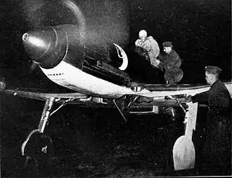 The aircraft also appeared in a series of "action shot" photographs in various magazines such as Der Adler, including claims that it had proven itself in combat in Denmark and Norway. One source claims that the aircraft were on loan to the one Luftwaffe Staffel in Norway for a time, but this might be a case of the same misinformation working many years later.