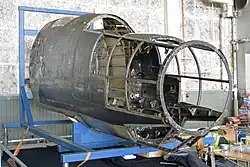 In terms of its general configuration, the He 115 was an all-metal mid-wing monoplane with a monocoque fuselage.[4] It was equipped with a pair of floats, each of which was attached to the underside of the engine nacelles via a large strut. The twin-spar wing was built in three sections.[4] It featured a stepped cockpit along with a rear-facing observation compartment.[5] Initially, the He 115's armament consisted of two 7.92 mm (.312 in) MG 15 machine guns, one in the nose and one in the dorsal position.[2] On later-build He 115s, the typical armament fitted included a fixed forward-firing 15 mm or 20 mm MG 151 cannon and two rearward-firing 7.92 mm (.312 in) MG 17 machine guns in the engine nacelles.[6][7] Furthermore, some variants carried LTF 5 or LTF 6b torpedoes and SD 500 500 kg (1,100 lb) or SC 250 250 kg (550 lb) bombs, while others carried LMB III or LMA mines.