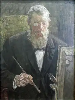 He was the son of a border customs officer and guard and spent his childhood in the village of Fischerhude where he practiced drawing while herding the farmers' geese. From 1864 to 1869, he studied art at the Hannover Polytechnical Institute on a royal scholarship from King George V of Hannover (1819–1878). After serving in the 1870/71 Franco-Prussian War, he went to Munich, where he became a student of Wilhelm von Diez.[1] In Munich he also met and married Amalie Mayer (1856–1933), the daughter of the wine merchant and restaurateur Joseph Mayer, also known as "Tenor-Mayer" because of his wonderful voice. Amalie, who had inherited her father's musical talents would bring music into the family life.