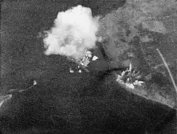 Ehrler was already airborne when he realized that his radio transmitter was not working.[42] Unable to communicate with his command center nor with the other pilots, he was unsure in what direction to fly. He decided to continue flying to Alta. At 09:30, Oberleutnant Werner Gayko, the commander of 9. Staffel, finally took off, followed by the other aircraft. At 09:42, Ehrler reached the vicinity of Storsteinnes when he observed to his left a distant mushroom-shaped cloud and anti-artillery bursts.[46] He then decided to head towards the smoke before heading west, hoping to cut off the bombers. He searched the coast heading northeast and southwest, and then to Malnes and to the vicinity of Heia before finally flying to Alta.[47] When it finally became clear that the target was the Tirpitz, it was too late for the fighters to intercept, and the Tirpitz was destroyed with much loss of life. 9. Staffel also did not find the bombers and returned to Bardufoss airfield.[48]