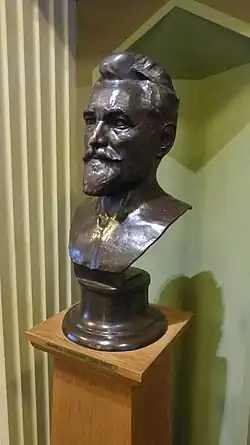 Ernemann's wife Marie Therese had passed away on 22 August 1917, and eleven years later, he died aged 78 on 16 May 1928 in his summer villa Heinrichs Eck at 21 Am Hartheberg in the spa town of Hartha, built in 1900 and since restored.[24][25][26] He was survived by his children Frieda Henriette Marie Therese (1876–1954), Alexander Karl Heinrich (1878–1956), Anna Katharina Gertrud (1880–1940), Dora Bertha Johanna (1883–1942) and Fritz Henry Otto (1886–1941). Heinrich Ernemann's grave is located in the Johannisfriedhof in Dresden-Tolkewitz.[1]