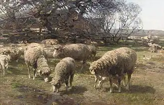 Heinrich Johann von Zügel (22 October 1850, Murrhardt – 30 January 1941, Munich)[1] was a German painter who specialized in pictures of farm and domestic animals, often posed with a human in a dramatic or humorous situation.