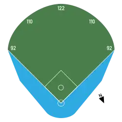 | Field size | Left/right field – 92 m (302 ft) Left/right-center – 110 m (361 ft) Center field – 122 m (400 ft) Backstop – 20 m (66 ft) ![]() |