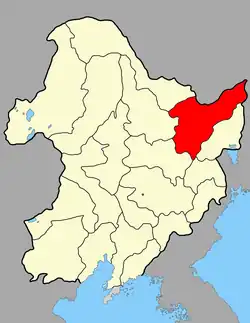 • Delizhen (Deongnijin) (德理鎮) present-day Harbin (Chinese: 哈爾濱; pinyin: Hā'ěrbīn), as its administrative centre, corresponding to the previous land of the Tieli Mohe