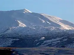 Hekla (Icelandic pronunciation: [ˈhɛhkla] ⓘ), or Hecla,[2][3] is an active stratovolcano in the south of Iceland with a height of 1,491 m (4,892 ft). Hekla is one of Iceland's most active volcanoes; over 20 eruptions have occurred in and around the volcano since the year 1210.[4] During the Middle Ages, the Icelandic Norse called the volcano the "Gateway to Hell" and the idea spread over much of Europe.