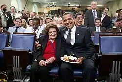 On August 4, 2009, Thomas celebrated her 89th birthday. President Obama, whose birthday is on the same day, presented Thomas with birthday cupcakes and sang Happy Birthday to her before that day's press conference.[45]