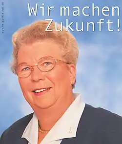 In 1966, Kleiner joined the Christian Democratic Union, becoming district chair of the CDU's Women's Union in Lübeck for ten years. Throughout her political career, Kleiner was a prominent advocate for senior citizen interests and held a number of high-ranking positions in the CDU's Senior Citizens' Union (SU).[1] She was the chair of the Lübeck SU from 1983 until 1993, and became the chair of the Schleswig-Holstein SU since 1999 – having previously held the position of deputy chair from 1992 until 1999 – and has been honorary chair since at least 2015.[1] She also became the deputy chair of the national SU in 2002.[1][2]