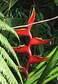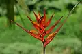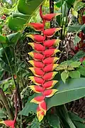 Heliconia is a genus of flowering plants in the monotypic family Heliconiaceae. Most of the 194 known species[3] are native to the tropical Americas, but a few are indigenous to certain islands of the western Pacific and Maluku in Indonesia.[2] Many species of Heliconia are found in the tropical forests of these regions. Most species are listed as either vulnerable or data deficient by the IUCN Red List of threatened species.[4] Several species are widely cultivated as ornamentals, and a few are naturalized in Florida, Gambia, and Thailand.[2]