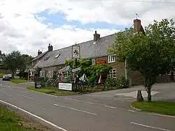 Hellidon is a village and civil parish about 5 miles (8 km) south-west of Daventry in Northamptonshire, England. The parish area is about 1,600 acres (650 ha).[2] It lies 520 feet (160 m) – 590 feet (180 m) above sea level on the north face of an ironstone ridge, its highest point, 670 feet (200 m) at Windmill Hill, being 0.5 miles (800 m) south-east of the village. The Leam and tributaries rise in the parish. The 2011 Census gave a population (with Lower and Upper Catesby) of 256,[1] estimated at 286 in 2019.[3] The long-distance Jurassic Way footpath linking Banbury, Oxfordshire, and Stamford, Lincolnshire, passes through. The origin of the name is unclear. "Holy Valley", "Haegla's Valley" and "Unstable valley" have been suggested, with the Old English "dun", meaning hill.[4]
