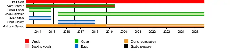 - Dylan Stark – bass, backing vocals (2013–2014)
