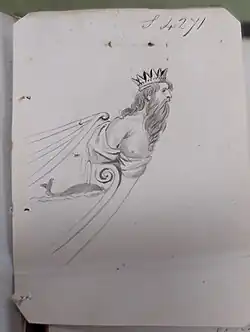 The design was approved with an estimate of £9.0.0 (approx. £970 today)[32] but it is unknown whether the Hellyer figurehead ever reached Moulmein, Burma (modern day Mawlamyine, Myanmar) where the ship was ordered. The carving that resides within the collection of the National Museum of the Royal Navy, Portsmouth is not the Hellyer figurehead. |