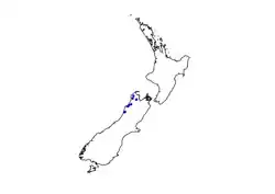| Observations of Hemideina broughi from iNaturalist (as of 2024). | |
