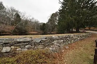 ![]() View of mill pond and remnant stonework | |