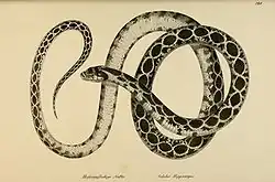 Hemorrhois is a squamate genus containing four species of aglyphous (non-venomous) ophidian colubrid snakes, commonly referred to as whip-snakes and Asian racers, respectively.[1] Snakes of this genus are found in an array of habitats, though they predominantly inhabit arid regions, with the most common three species of the four being found on the Iberian Peninsula and in Morocco and Northern Africa. The species H. nummifer, the Asian racer, is found in the far east of mainland Greece, Turkey and the Levant (as far south as Jordan), as well as across Armenia and into Northern Iran, ranging as far east as Kyrgyzstan.[2][3]