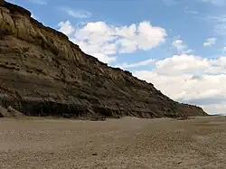 According to Ian West of Southampton University, "Hengistbury Head is the best part of the Bournemouth coast for geology and geomorphology .... [and] is geologically important for the unusual nodules of sideritic ironstone [found] in Middle Eocene strata."[68] The exposed and relatively untouched cliff face at the head perfectly lends itself to students of stratigraphy. Warren Hill itself is composed of Tertiary Bracklesham Beds,[69] a mixture of clays and marls with overlying sandy and lignitic beds.