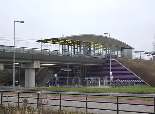The station is elevated above street level on a railway embankment. The station is named after the street on which its main entrance is located which, in turn, is named after Dutch politician Henk Sneevliet.