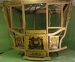 During the War of Austrian Succession, in 1741 as a lieutenant general he commanded the city Kolberg. As a participant in the Battle of Mollwitz, his infantry regiment not only held its line despite the flight of the Prussian cavalry, but subsequently attacked the Austrian line with such ferocity that he and his soldiers received special mention in Kurt Christoph Graf von Schwerin's report. He was wounded in the fighting.[8] The regiment's actions here reflected the iron training imposed by the prince of Anhalt Dessau on his subordinates, and their subsequent training of their own regiments. In addition, the Prussian infantry benefited not only from the discipline of drill but also the latest in military technology; unlike their Austrian counterparts, they had iron ramrods which allowed them to fire faster and more accurately.[9] After the battle, he was made a Knight of the Order of the Black Eagle on 15 April 1741, and later awarded the Order Pour le Mérite. During the Silesian Wars, in 1744 he acquired as war booty the gold-plated carriage originally belonging to Jan Sobieski; Kleist gave the carriage to his local church.[1]