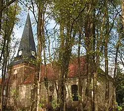 The town was first mentioned in 1375, when it was part of the Bohemian Crown. Afterwards it was part of the Margraviate of Brandenburg, then of the Kingdom of Prussia from 1701, and of the German Empire from 1871. During World War II, in 1944, a subcamp of the Sachsenhausen concentration camp was established, in which some 650 women, mostly Polish, were imprisoned and subjected to forced labour.[3] In April 1945, the subcamp was dissolved and the surviving prisoners were sent on a death march to the Ravensbrück concentration camp.[4]