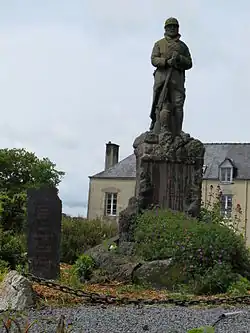 These inscriptions are written in Breton and French, and in front of the obelisk is a sculpture of a praying woman in Breton dress.[1] | |