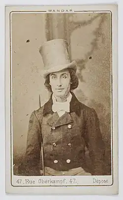 He sang Flavio / Florville in Offenbach's production of Rossini's Il signor bruschino at the Bouffes in 1858.[8] In April 1858, he created another role: Guido in La chatte métamorphosée en femme at the Bouffes.[3][9] At this time he also appeared in concert, for instance at the Sociétés savantes circle, singing chansonettes.[10]