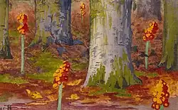 Among her most notable works are her Japanese-inspired woodcut prints with up to six colours which she painted in the late 1890s. Hahn-Brinckmann created them using woodcut tools from Japan, specially imported by Justus Brinkmann.[2] The works were widely exhibited, in Hamburg, Dresden, Copenhagen and at the 1900 Paris World Exhibition, where she was awarded a silver medal.[3] Four examples of her Japanese-style woodcuts can be seen at the Vejen Art Museum in the south of Jutland.[2]
