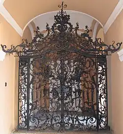 Henrik Fazola was born in 1730 to a wealthy family in Würzburg where he became an acknowledged smith with his younger brother, Lénart Fazola. They visited some Western-European countries in order to learn more about their profession and improve themselves to a higher level.[2] In 1741, Maria Theresa, the Queen of Hungary nominated Ferenc Barkóczy as the bishop of Eger who invited a lot of foreign masters for his developer constructions in the city, inter alia the avowed smith, Henrik Fazola from Würzburg, in 1758.[2][3] As he did the orders of the bishop at the highest artistic quality, he got more and major errands from the Church official and became a well-off citizen of Eger. During this period, he made the wrought iron gates and lunette of the County Hall of Eger with grapes and crests.[2][5]