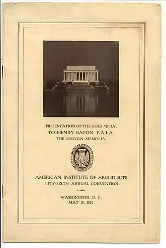In May 1923, President Warren G. Harding presented Bacon with the American Institute of Architects's Gold Medal, making him the sixth recipient of the honor.