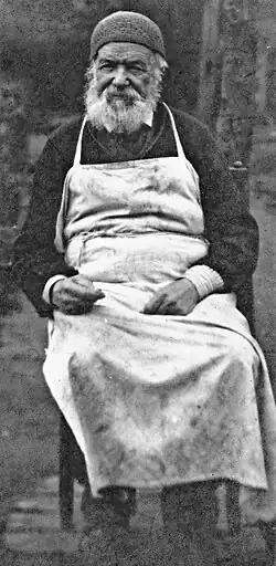 He was born in Horsham on 11 December 1826, the son of William and Ellen Burstow, makers of clay tobacco pipes.[1] He attended school into his teens, sometimes also working part-time for his mother or for a harness maker, until in 1840 he was apprenticed to a shoemaker.[2] Soon afterwards, John Vaughan, his master's father and also the sexton and head bellringer at Horsham parish church, invited him to become one of the bellringers.[3] This was to become a major part of his life, both as an occupation and for evenings spent with his fellow ringers, an occasion for singing, his other main interest. Learning of Horsham's achievements in ringing changes in the late eighteenth century, he became dissatisfied with the current standards of bellringing in Horsham and took to walking to neighbouring villages to ring changes with more skilled groups, particularly in Warnham and Newdigate. By the time he retired from bellringing he would have rung changes in 55 belfries and taught ringing in 15 of them.[4] On 30 April 1855 he married Elizabeth Pratt (1833-1909);[1] he celebrated his wedding day by ringing the church bells all day long with seven other shoemakers.[5] Shoemaking paid poorly, especially as ready made shoes began to undercut the market,[6] and in 1907 Burstow and his wife were facing the prospect of the workhouse. William Albery (1865-1950), a saddler, organized a fund to provide a pension and also collected the Reminiscences, editing them and arranging for their publication to benefit Burstow. He died on 30 January 1916, having lived all his life in Horsham.[1]