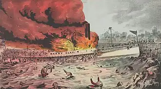 Henry Clay was an American side paddle wheel steamboat. Built in 1851, it caught fire while on a run on the Hudson River between Albany, New York and New York City on July 28, 1852. Nearly 50 of its over 500 passengers died in what was the river's worst steam disaster, near Riverdale, in The Bronx, New York.[1]