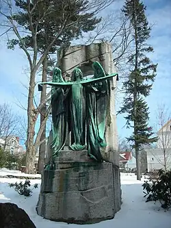 Henry Coffin Nevins married Julia Du Gay of Paris but they had no children. He was buried at Mount Auburn Cemetery beneath a limestone monument of cherubs and palm fronds designed by Augustus St. Gaudens.[10] At the cost of over fifty thousand dollars, his wife dedicated to her husband, in the nave of the local Congregationalist Church, "The Resurrection", a stained glass window designed by John LaFarge and "said to be (one of) his masterpieces."[8][11]