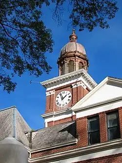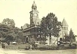 In 1895, this courthouse was remarked by a grand jury as needing attention. The county court instead voted to tear the building down and replace it.[1] The resulting replacement is the courthouse that stands today.