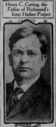 Henry Cutting was born in Iowa on April 3, 1870, to George and Jean Cutting.[1] He graduated from Nevada University in 1894, as a member of its first graduating class.[2] He was elected state superintendent of schools of Nevada in 1894. In 1903, Cutting moved to San Francisco, where he organized the San Francisco and Tenepah Mining Exchange. Upon his first visit to Richmond, then a small town in the east bay, he fixed upon the potential of its harbor, which he believed could "make a big city".[3] In 1904, he founded the Port Richmond Canal and Land Company, of which he was the president for several decades, for the purpose of developing the harbor. This company played an important role in the Richmond economy, up to that point dominated by Standard Oil. Cutting won federal appropriations for it in 1914. By 1922 he was living in Oakland and launched an unsuccessful bid for the Republican nomination for congress in that district.[4]